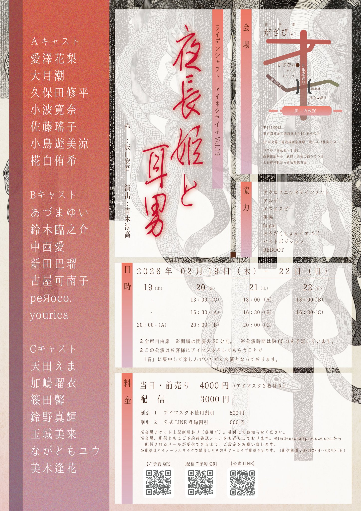 会場チケット🔗:前売り当日共に4000円(アイマスク付き)※公式LINE割引き有り ※アイマスク不要割引有り